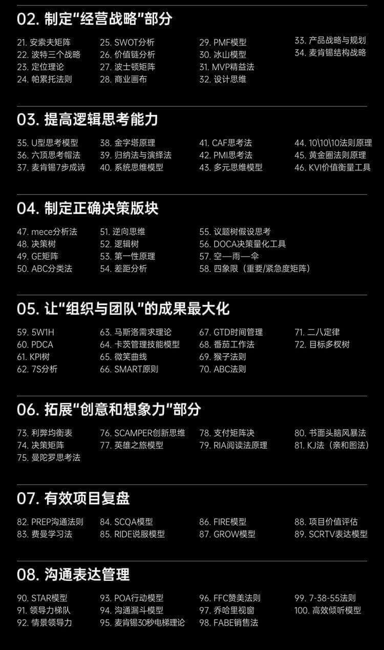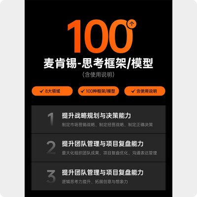 • 100个思考框架/模型 + 100页逻辑图 + 100页数据图,共300页